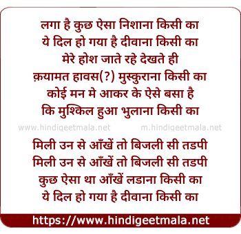 Lyrics of Laga Hai Kuch Aisa Nishana Kisi Ka - लगा है कुछ ऐसा निशाना किसी का