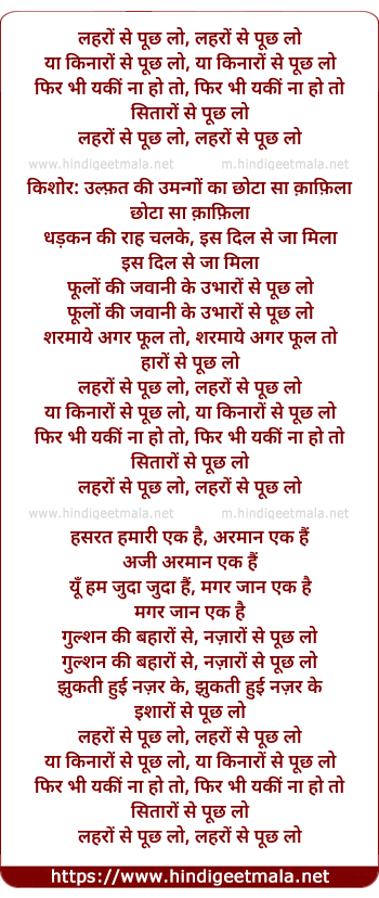 Lyrics of Laharo Se Puchh Lo, Ya Kinaro Se Puchh Lo - लहरों से पूछ लो, लहरों से पूछ लो