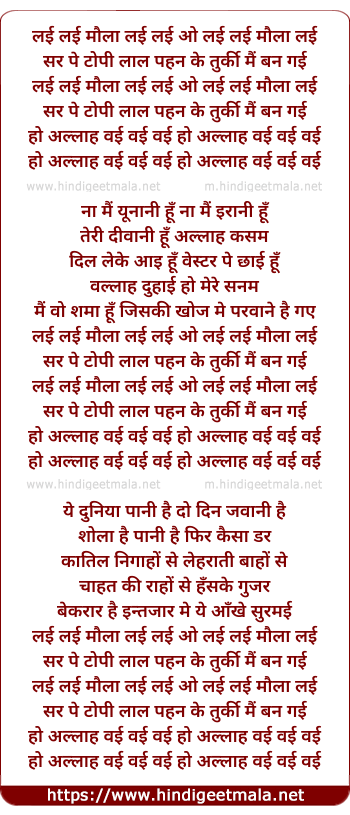 Lyrics of Lai Lai Maula Lai Lai - लई लई मौला लई लई