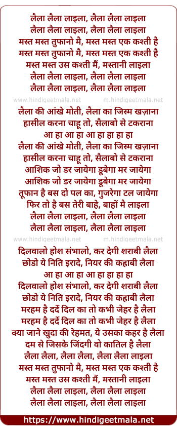 Lyrics of Laila Laila Laila - लैला लैला लैला