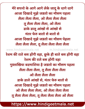 Lyrics of Laila (Tere Sapno Ke Aage) - (Unplugged) - मेरे सपनो के आगे आगे लेके जादू के धागे धागे