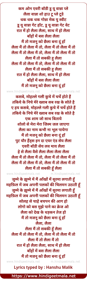 Poetic Translation - Lyrics of Laila - Tezz (Remix) - कम ओन एवरी बॉडी डू यू वान्ना प्ले