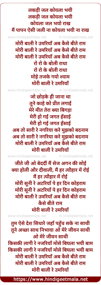 Lyrics of Lakadi Jal Koyalaa Bhayi - लकड़ी जल कोयला भयी