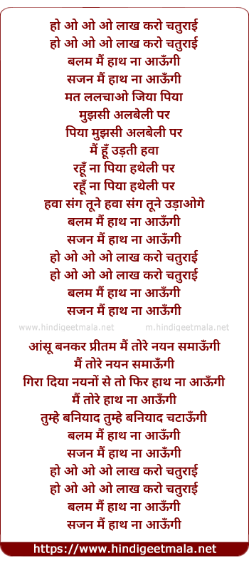 Lyrics of Lakh Karo Chaturai - हो ओ ओ ओ लाख करो चतुराई