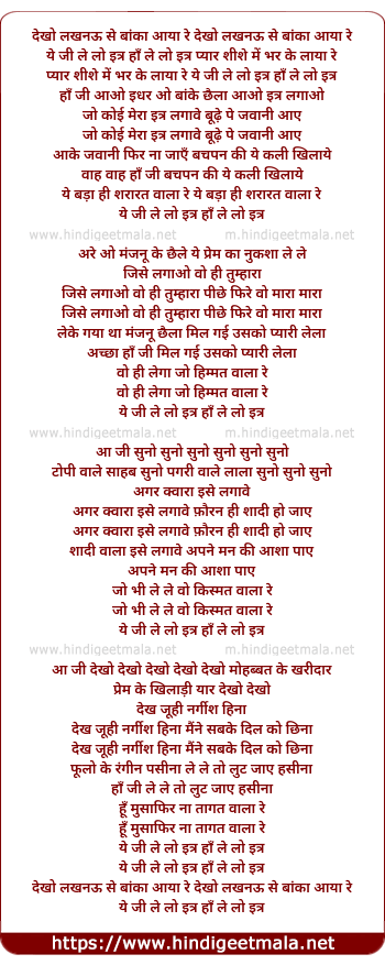 Lyrics of Lakhnau Se Banka Aaya - लखनऊ से बांका आया
