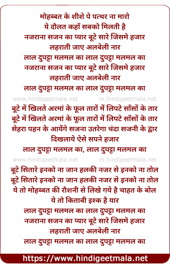 Lyrics of Lal Dupatta Malmal Ka - लाल दुपट्टा मलमल का