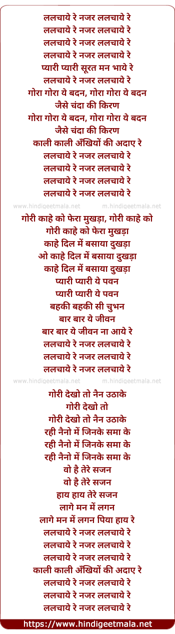 Lyrics of Lalchaye Re Nazar Lalchaye Re - ललचाये रे नजर ललचाये रे