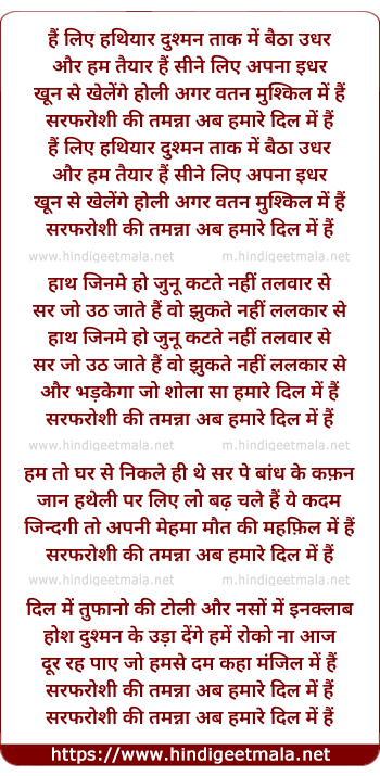 Lyrics of Sarfaroshi Ki Tamanna Ab Hamare Dil Me Hai - सरफरोशी की तमन्ना अब हमारे दिल में हैं