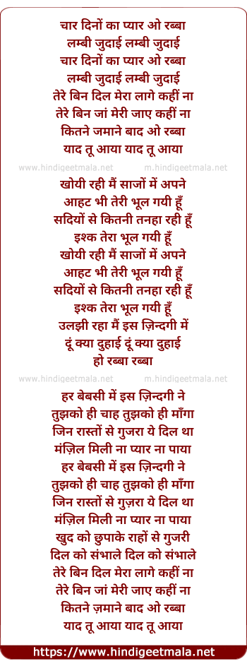 Lyrics of Lambi Judayi - लम्बी जुदाई