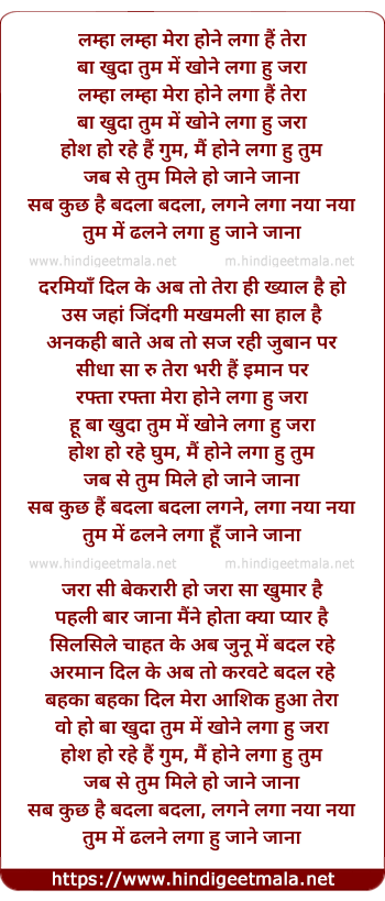 Lyrics of Lamha Lamha Mera Hone Laga Hai Tera - लम्हा लम्हा मेरा होने लगा हैं तेरा