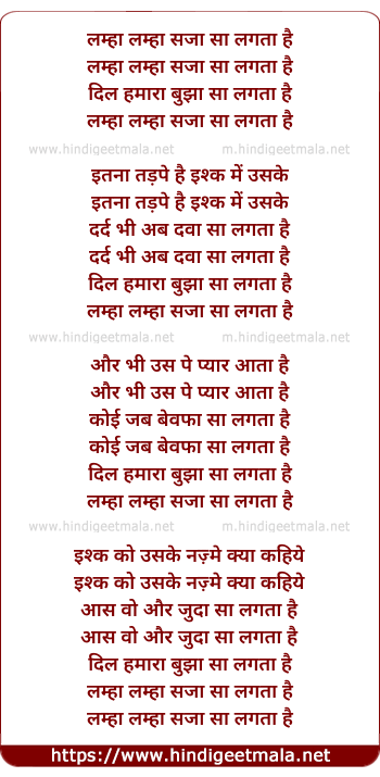 Lyrics of Lamhaa Lamhaa - लम्हा लम्हा सजा सा लगता है
