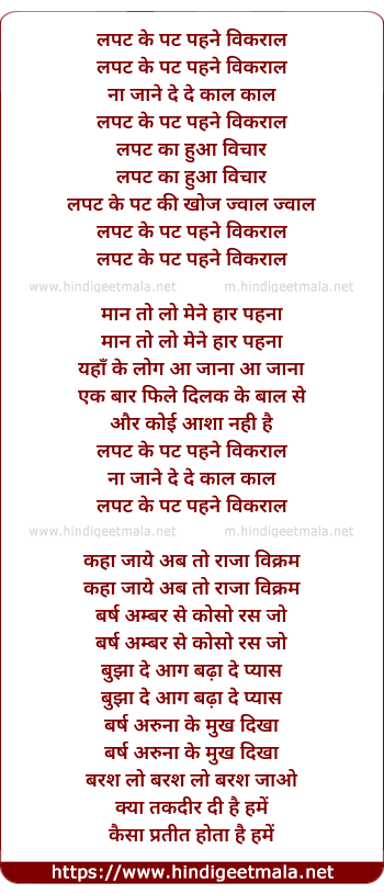 Lyrics of Lapat Ke Pat Pahne Vikral - लपट के पट पहने विकराल
