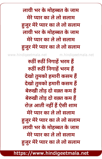 Lyrics of Layi Bhar Ke Muhabbat Ke Jam - लायी भर के मोहब्बत के जाम