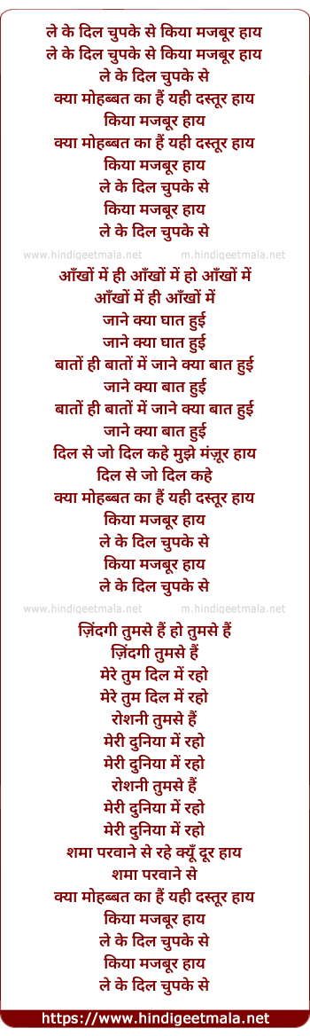 Lyrics of Le Ke Dil Chupke Se Kiya Majbur Haye - ले के दिल चुपके से किया मजबूर हाय