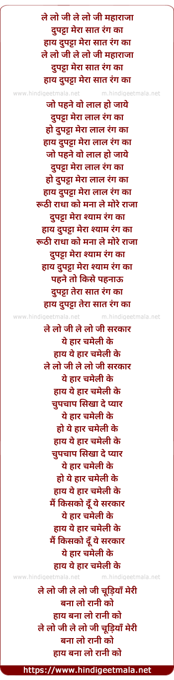 hay dupatta tera saat rang ka