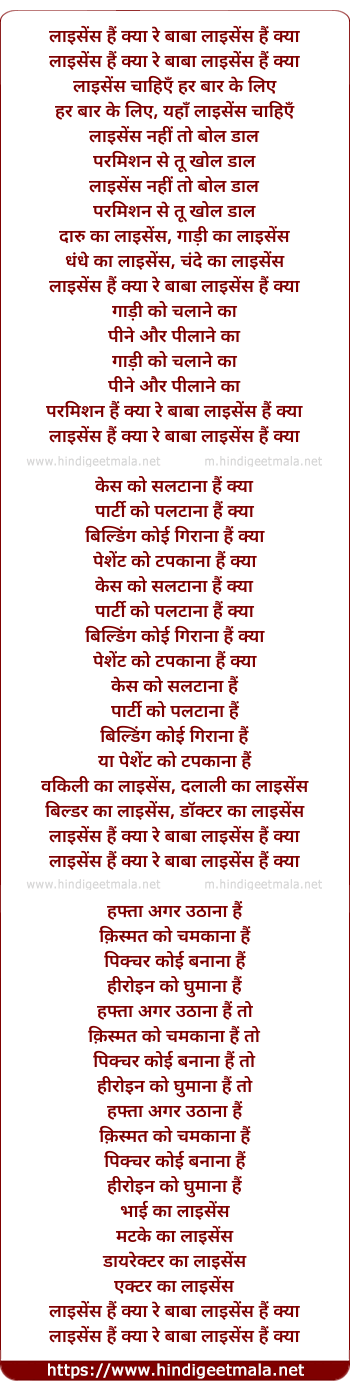 Lyrics of License Hai Kya - लाइसेंस हैं क्या रे बाबा लाइसेंस हैं क्या