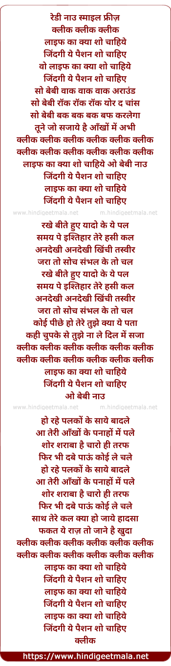 Lyrics of Click, Life Ka Kya Sho Chahiye - क्लीक, लाइफ का क्या शो चाहिये