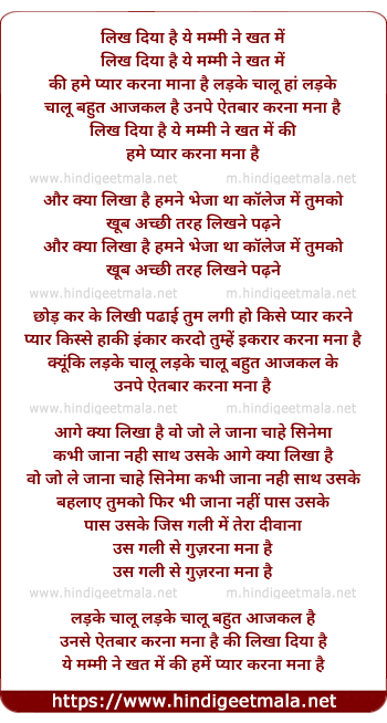 Lyrics of Likh Diya Hai Yeh Mummy Ne Khat Mein - लिख दिया है ये मम्मी ने खत में