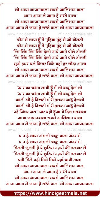 Lyrics of Lo Aaya Japanwala Sabse Aalisaan Vala - लो आया जापानवाला सबसे आलिशान वाला