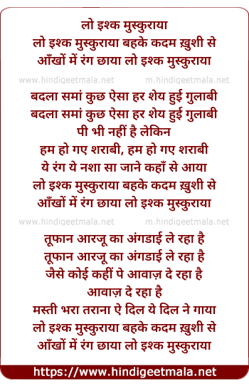Lyrics of Lo Ishq Muskuraya Behke Kadam Khushi Se - लो इश्क मुस्कुराया बहके कदम ख़ुशी से