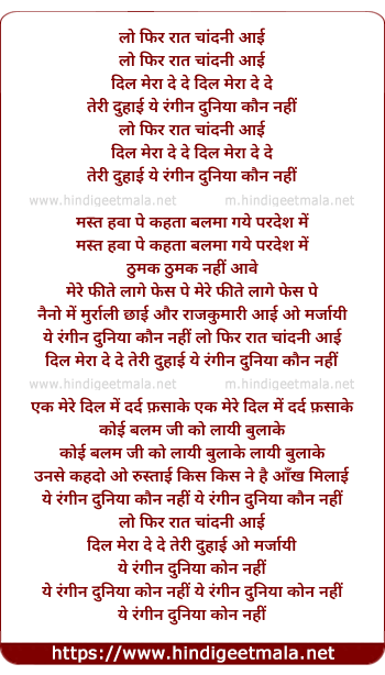 Lyrics of Lo Phir Raat Chandni Aayi - लो फिर रात चांदनी आई