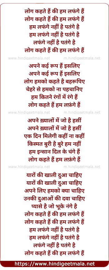 Lyrics of Log Kahate Hai Ke Hum Lafangey Hai - लोग कहते हैं की हम लफंगे हैं