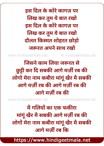 logo mera nam kabira mangu khair mai sabki