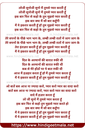 Lyrics of Loji Sunoji Suno Mai Tumse Pyar Karti Hu - लोजी सुनोजी सुनो मैं तुमसे प्यार करती हूँ