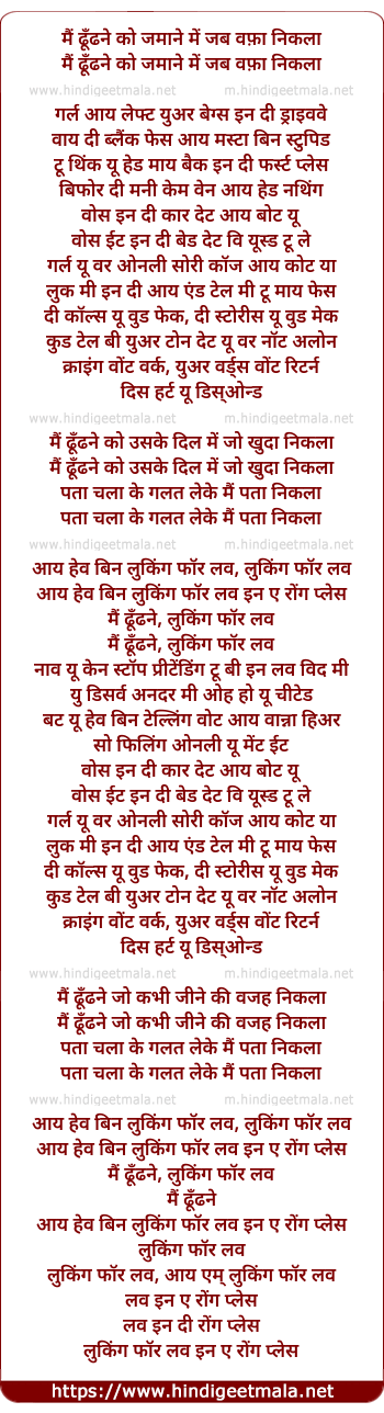 Lyrics of Looking For Love (Main Dhoondne) - मैं ढूँढने को जमाने में जब वफ़ा निकला