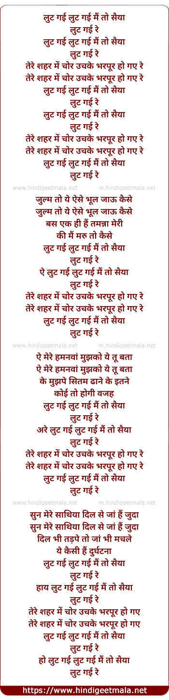 Lyrics of Lut Gayi Lut Gayi Main To Sainya - लुट गई लुट गई मैं तो सैया