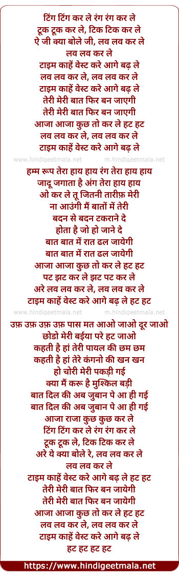 Lyrics of Love Love Kar Le - लव लव कर ले