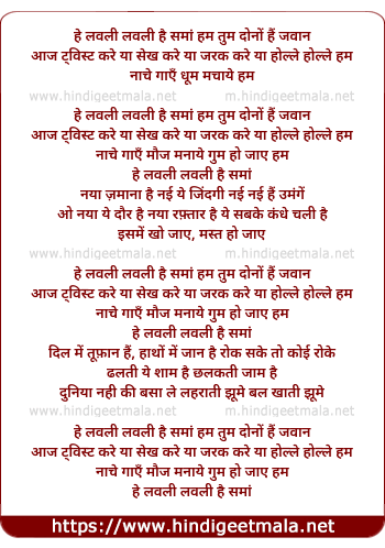 Lyrics of Lovely Lovely Hai Sama, Hum Tum Dono Hai Jawaan - लवली लवली है समां, हम तुम दोनों हैं जवान