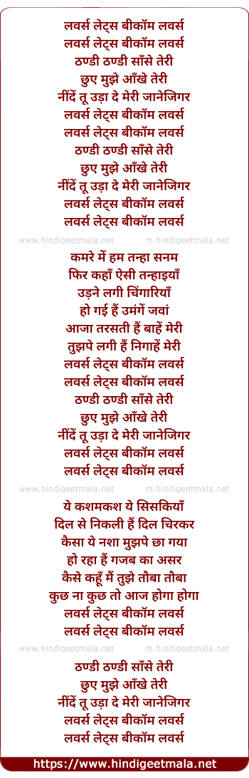 Lyrics of Lovers Thandi Thandi Saanse Teri - लवर्स ठण्डी ठण्डी साँसे तेरी