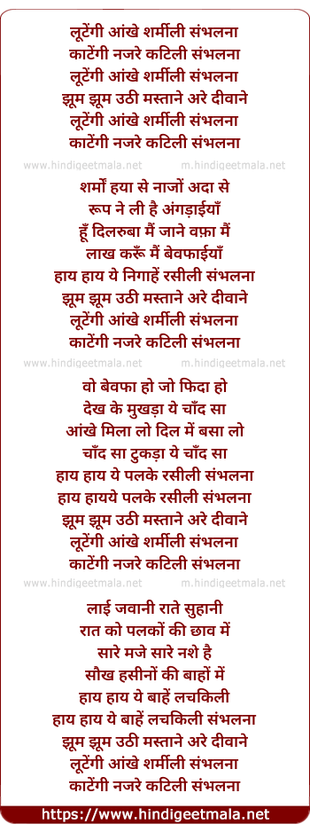 Lyrics of Lutengi Ankhe Sharmili Sambhalna - लूटेंगी आंखे शर्मीली संभलना