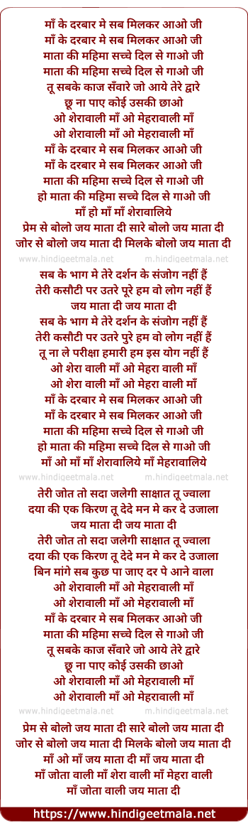Lyrics of Maa Ke Darbaar Me Sab Milkar Aao Ji - माँ के दरबार मे सब मिलकर आओ जी