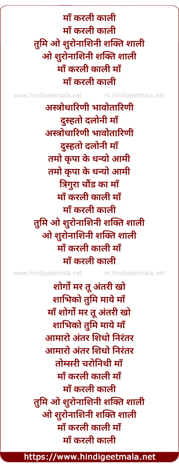 Lyrics of Maa Korali Kali - माँ करली काली