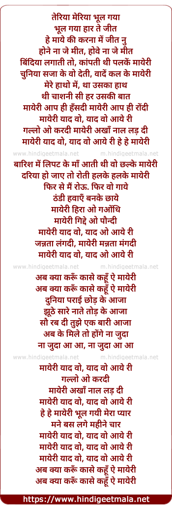 Lyrics of Maaeri Aap Hi Hansti - तेरिया मेरिया भूल गया