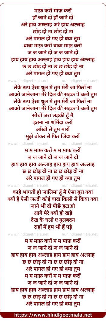 Lyrics of Maaf Karo Ha Maaf Karo - माफ़ करों हाँ माफ़ करों