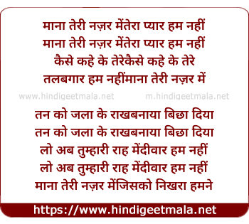 Lyrics of Maana Teri Nazar Me - माना तेरी नज़र में तेरा प्यार हम नहीं