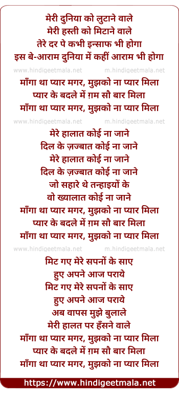 Lyrics of Maanga Tha Pyaar Magar - माँगा था प्यार मगर