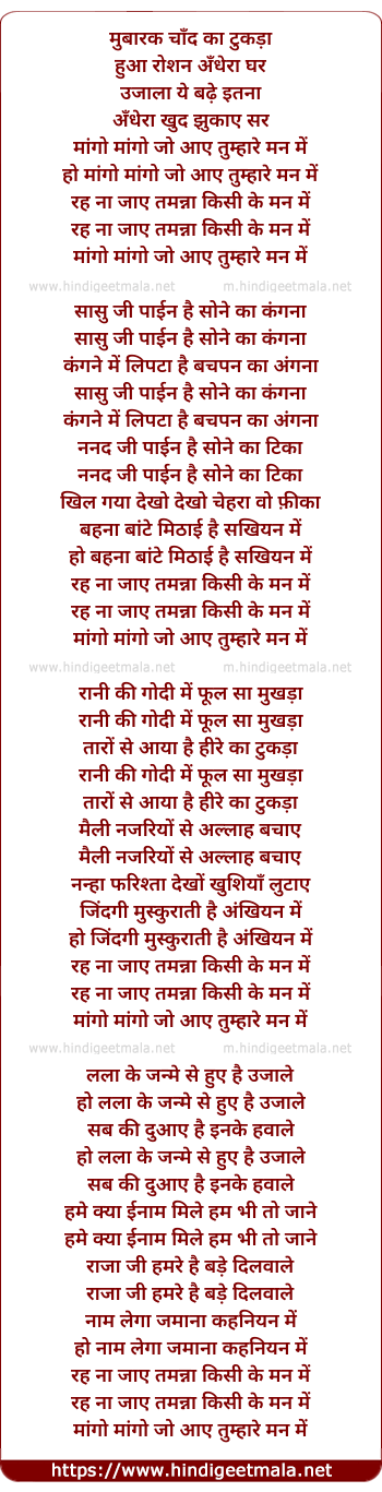 Lyrics of Maango Maango Jo Aaye Tumhare Man Me - मांगो मांगो जो आए तुम्हारे मन में