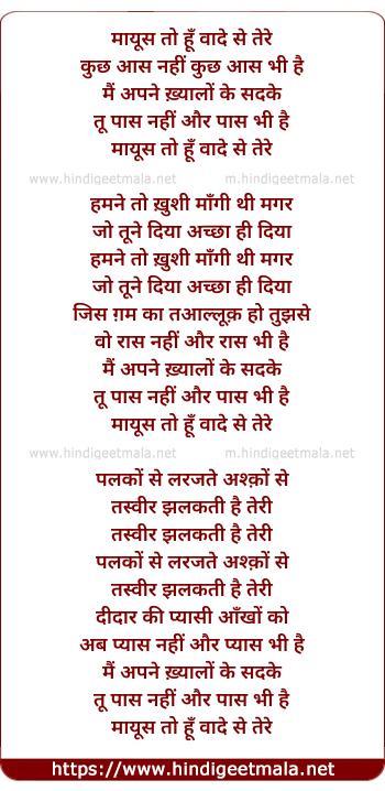 Lyrics of Maayus To Hun Vaade Se Tere - मायूस तो हूँ वादे से तेरे
