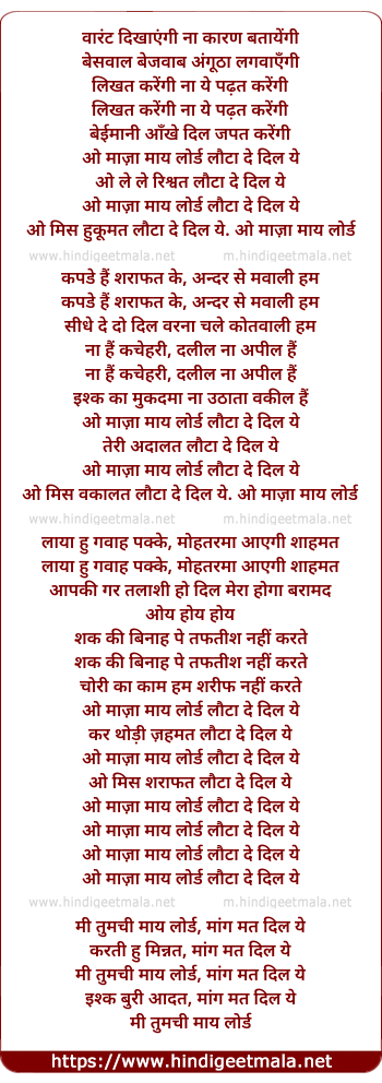 oh miss hukumat lauta de dil ye, oh maaza my lord