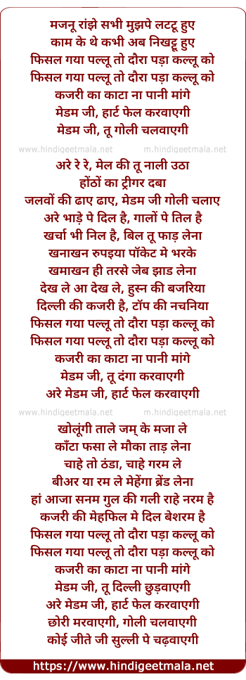 Lyrics of Madam Ji, Heart Fail Karwayegi - मैडम जी, हार्ट फेल करवाएगी