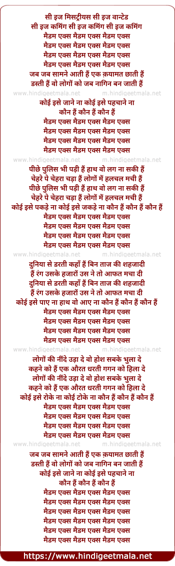 Poetic Translation - Lyrics of Madam X Madam X - मैडम एक्स मैडम एक्स