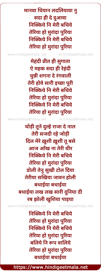 Lyrics of Madhaniyan Nikkiye - मानवा धियान लदलियावा नु