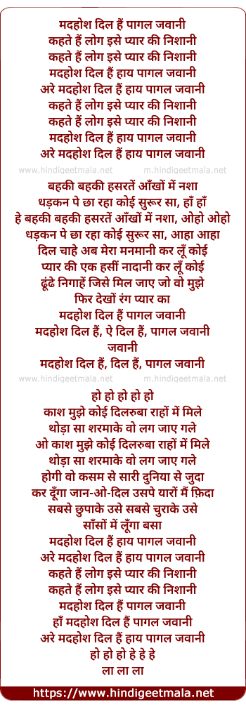 madhosh dil hai, dil hai, pagal jawani