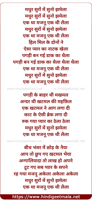Lyrics of Madhur Suron Me Suno Jhamela - मधुर सुरों में सुनो झमेला