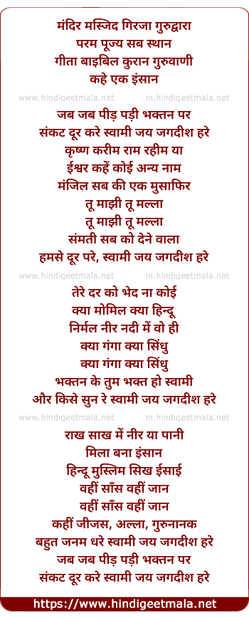 Lyrics of Mandir Masjid Girja Gurudwara - मंदिर मस्जिद गिरजा गुरुद्वारा