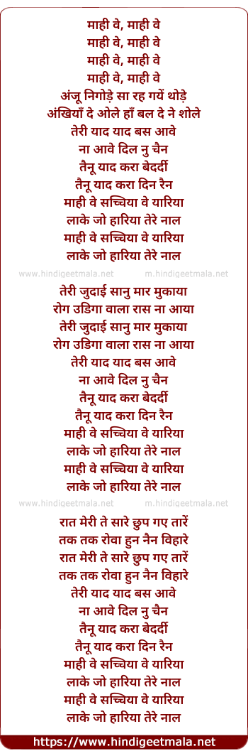 Lyrics of Mahi Ve (Ali Abbas) - माही वे, माही वे